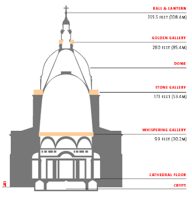 Two hundred and fifty seven steps up a winding nautilus of stairs, I came out on a ledge that rings the interior of the dome of St. Paul’s Cathedral. The “whispering” part of the gallery refers to the fact that a whisper on one side of the dome can be heard 300 feet across on the other side. I’m not sure if that’s actually true, because I did not try it. I was too busy remembering that I am afraid of heights, while also being dazzled by the artwork inside the towering ceiling. One can climb up to the tippity top, but like I said, afraid of heights.
