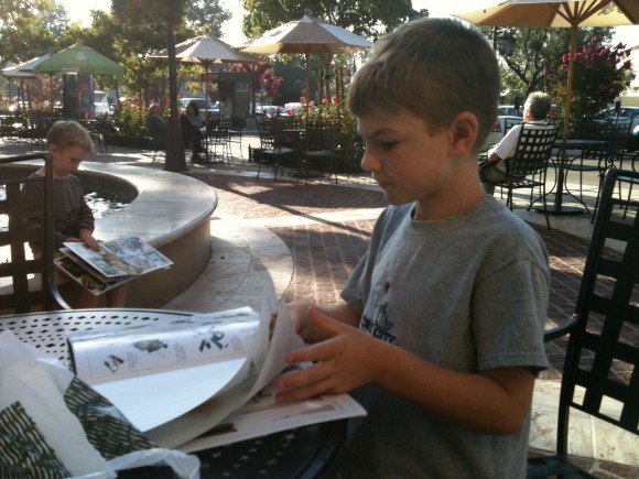His mind is soaking up information and skill just as quickly. He can read with alarming clarity. His handwriting, already so precise and articulate, is getting more daring. “I want to write like you,” he says, as he feigns cursive writing with a flourish. He tries to do his schoolwork his own way, coloring outside the lines, adding drawings or embellishments where none are required. I counsel him to play the game, do what’s expected of him at school. The fun part of learning isn’t just in c0mpleting the assignment, but to take what you’re learning and do something with it. Meanwhile, you’ve got to play the game.
