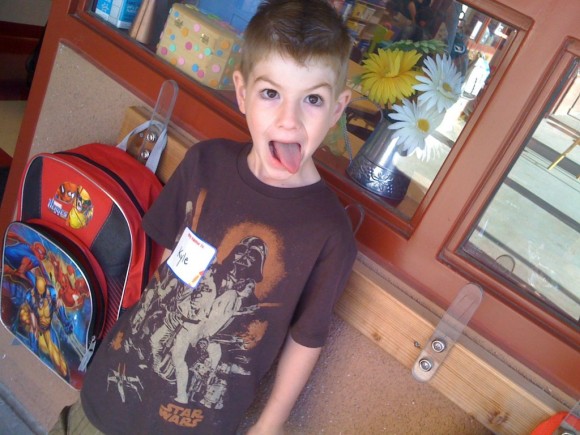 Now that Kyle is in first grade, he has other things to learn. Remember to bring your jacket home or you don’t get to play video games. Write neatly so people can read your wonderful words. And as always, sit still.