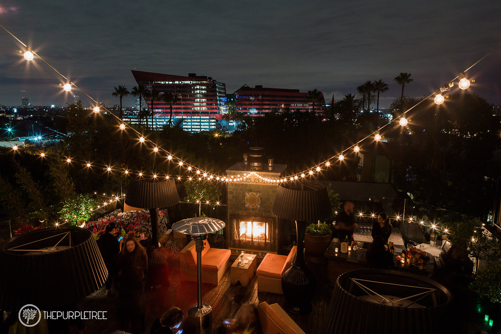 The Hotel itself, once we arrived an hour and a half later, is a delight of custom decor, narrow hallways, friendly and helpful staff, and old-fashioned ambiance. Beautiful (but not unapproachably so) people lounged about in the public spaces, and the rooftop pool looked like a magic portal contrasting against the stormy sky. The party was held on the property’s Firedeck, a cozy nook of the rooftop with a fireplace.