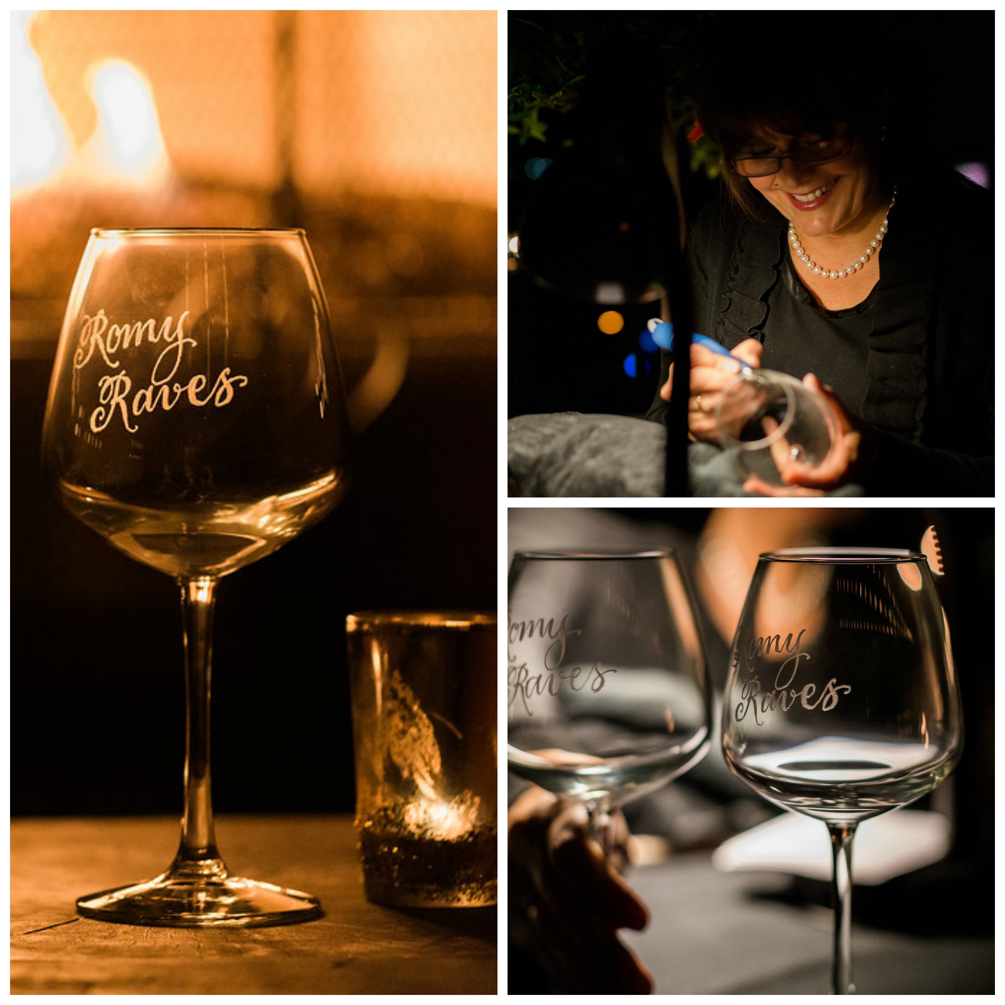 In another, Agoura Hills’ own Laureen Crisafulli of The Engraved Letter etched wine glasses, a pair for each guest with messages of their choices, by hand. (I had her engrave “Wine O’Clock” and “Wine-thirty” on mine!).