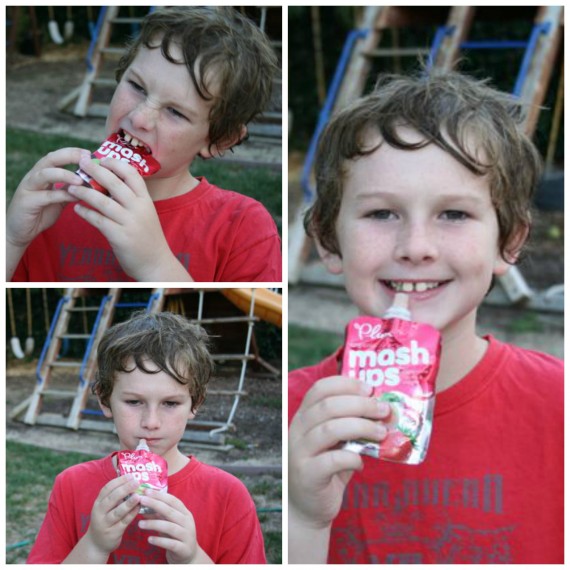boy eating plum organics mash ups