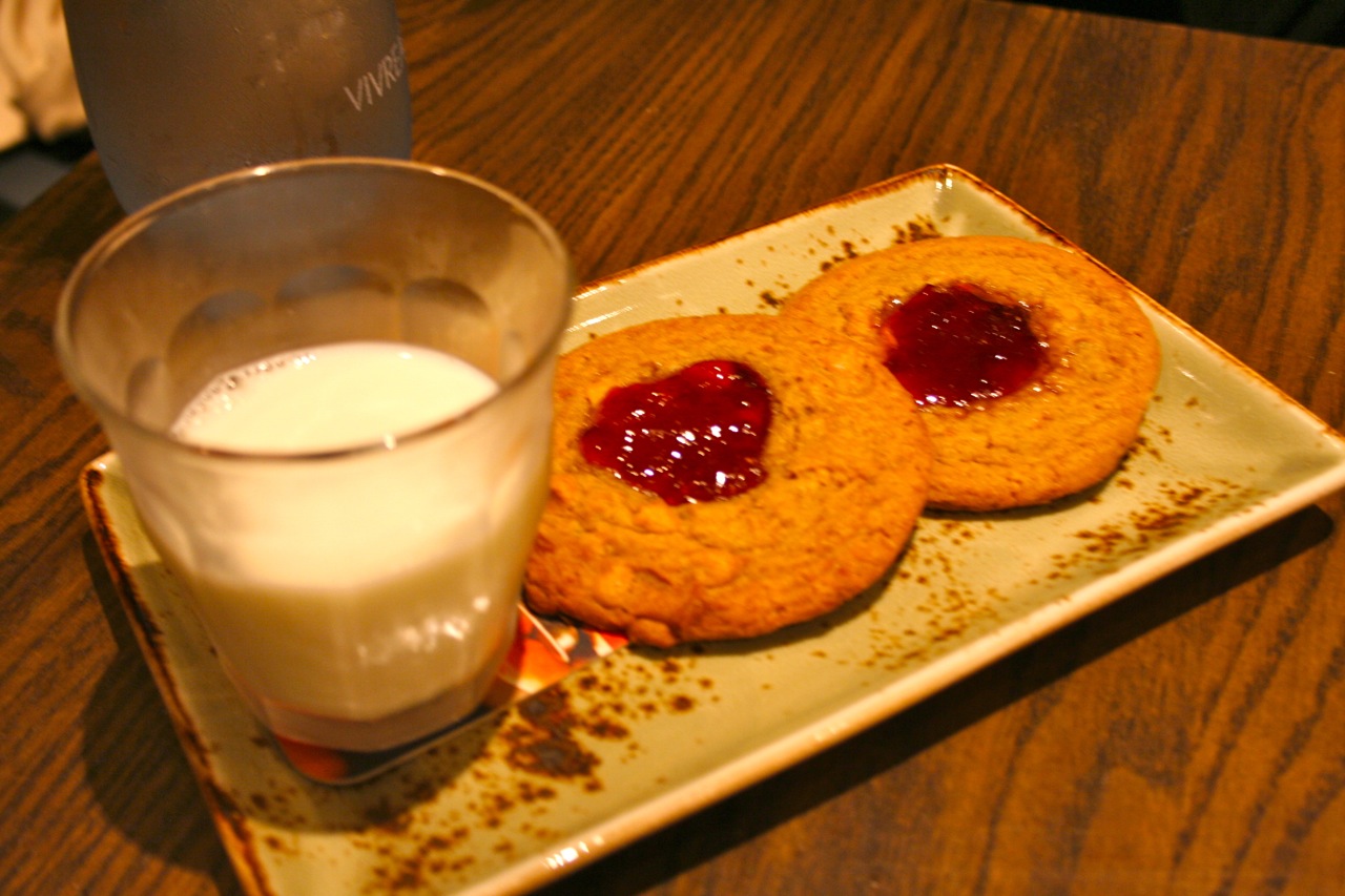 The number one reason I would recommend trying PS805? It’s cute. The nostalgic food theme, the business’s support of local schools (on the night of this media dinner, drinks were on a cash bar basis, with all proceeds to benefit The Conejo Schools Foundation, a group that seems similar to Las Virgenes’ THE Foundation), the decor and menu, even the feedback card presented at the end of the meal, labeled “report card” and asking the diner to grade the business on different areas of service, all create an experience that at the very least gives you something to talk about. I would dine there again, simply to taste more of the drinks (and possibly sample one of the 40 beers) and try a few different foods. Our dessert was a cute presentation of PS805’s take on the PB&J: two large peanut butter cookies each with a dollop of sweet jam in the centers, served with a cold glass of milk. Just one. For dipping.