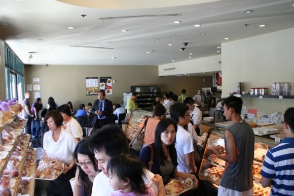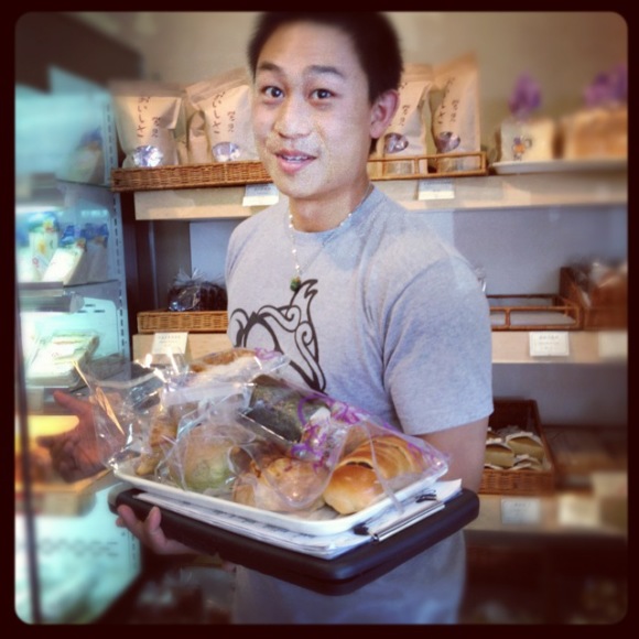 This is Michael, with an armload of delectable items at J&J Bakery. The secret to Taiwanese bread is the “Q” or the elasticity of the bread. As I ate a croissant, he explained that it’s best to pull it apart, piece by piece, and feel how stretchy the bread is. The more, the better.