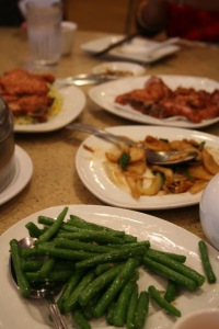 In addition to the dumplings and tea, we also sampled sauteed green beans, fried pork and fried rice, and Shanghai rice cakes with noodles. The rice cakes looked like sliced water chestnuts, but they were doughy and delicious.