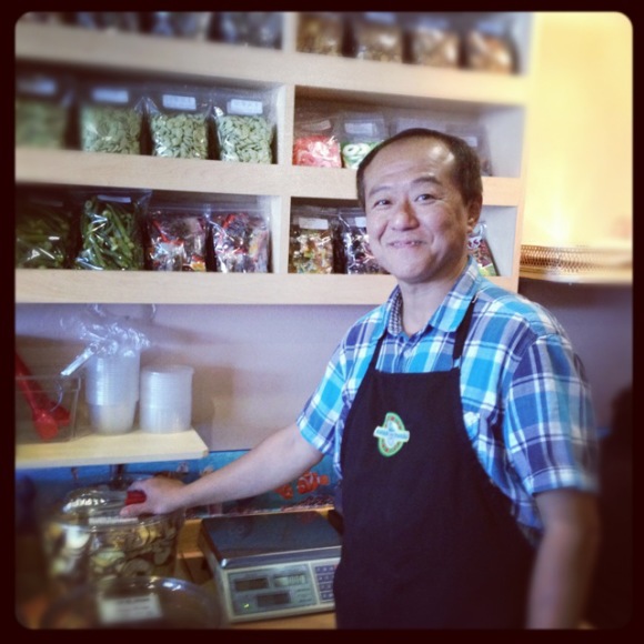 Not pictured: the tiny, moist, and unbelievably delicious mochi fruit puffs I brought home for the kids. One was filled with mango jelly and cream, one with strawberry. The kids didn’t like them. I win!