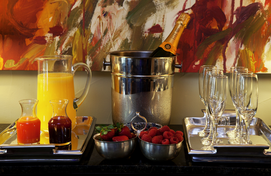 Includes (2) Bottles of Champagne, (6) Mini-Carafes of Orange Juice