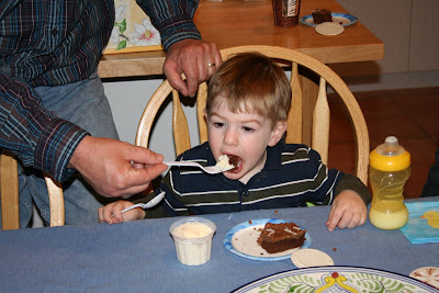 When the big moment finally arrived, Kyle was dumbstruck. He’s been singing “Happy Birthday to Jacob” for weeks, ever since Jacob’s birthday party with the Elmo cake. I hope he wasn’t too disappointed in Mom’s ghetto homemade cake. Actually, I know he wasn’t because he ate it with the gusto of a castaway eating pizza again after 4 years on the island.