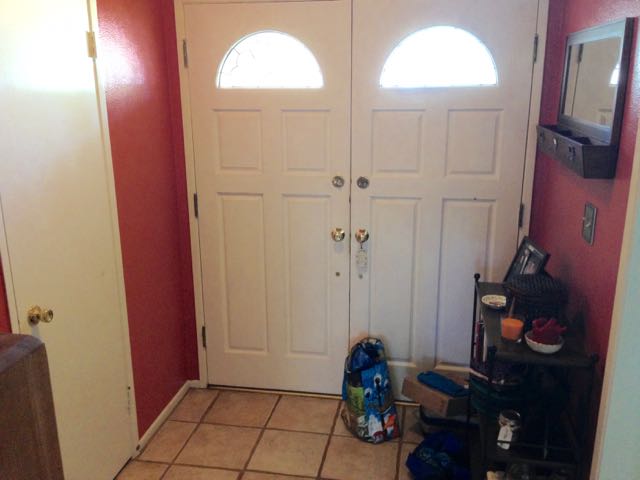 A command center is a must-have for a family with school-aged kids. I have two boys, one starting middle school, and one in elementary school. For the past several years, they have come in the front door after school and dumped their backpacks, jackets, shoes, and socks right inside the door. Because stuff attracts more stuff, their father does it too. Not all of these all the time, and not necessarily in that order, and sometimes including extra projects or stuff they acquired on the way home from school.