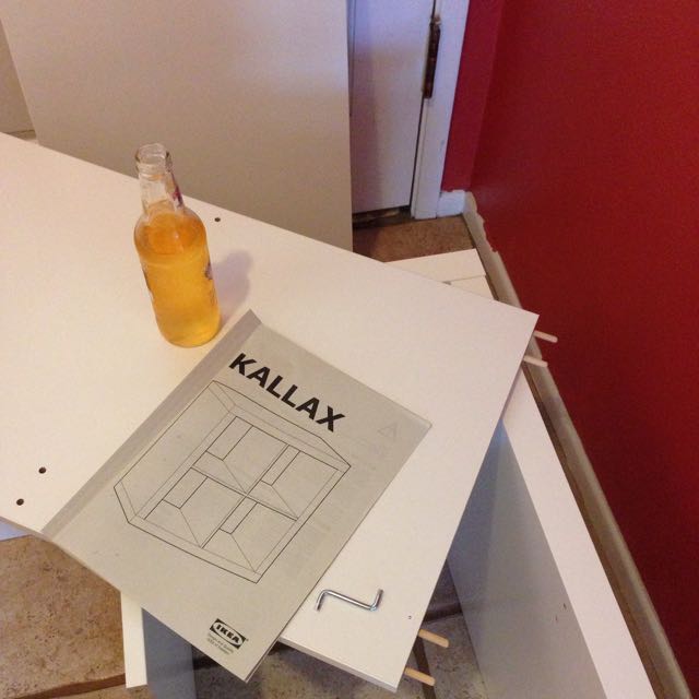 Kallax shelf unit – $35.99 plus rock star cursing, a Smirnoff Ice, and lots of sweating too