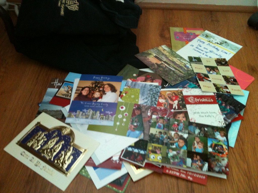 Going through the pile doesn’t make Lisa’s absence feel more real.  Is it time that has done it, and the fact that the cards only go up to 2010.  There should be a large number from 2011.  I’m sure there probably are people who haven’t heard about Lisa’s passing who did send cards to her empty house.  But time, that devil and saint, has brought with it the absence of phone calls and visits and hugs and laughter and good times shared with my family and her family and just between the two of us.  That’s what makes it feel real.  Still, it is this task now that makes me weep fresh tears today.