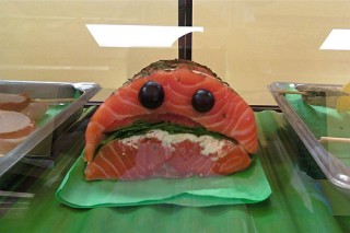 The salmon haunted me.  I kept looking at its fake pink flesh as I tossed other items in the cart.  Cream cheese salmon.  Eggs salmon.  Milk salmon.  Red wine SALMON.