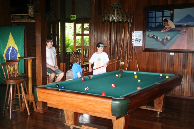 On the northern shore of Lake Arenal at the top of the hills with a stunning view of Volcano Arenal, this lodge is spread out over acres of land. Our room was in a free-standing chalet. One entire wall was made of glass, facing the volcano, where we sat for hours watching the clouds gather and shift, and lightning storms advancing from the horizon. At the main building we arranged for our activities, found a pool table, and enjoyed a nice caipirinha and a hot tub soak. Everything is overgrown with moss and vegetation, now matter how quickly the staff tries to keep up with nature, so it has a bit of a lonely remote feeling, even though it’s easy enough to get down the hill and to the more populated activities and the local town of La Fortuna.