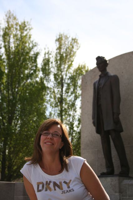 **Abraham Lincoln poses behind Auntie Lisa outside the capitol building: