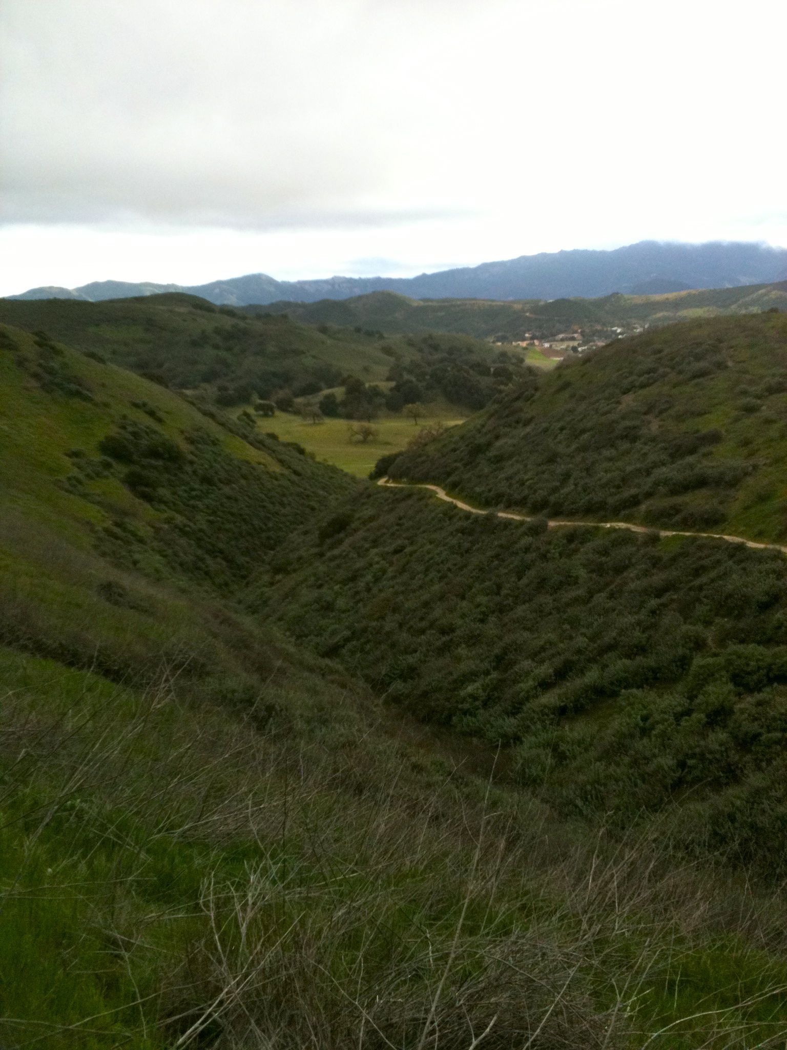 As the sky darkened, our family headed out for a short hike at Cheesboro Canyon. Although rain threatened and a chill had settled into this Sunday afternoon, we had been cooped up in the house all day and needed some fresh air and exercise. An easy walk up to the summit of the first hill rewarded us with this view.