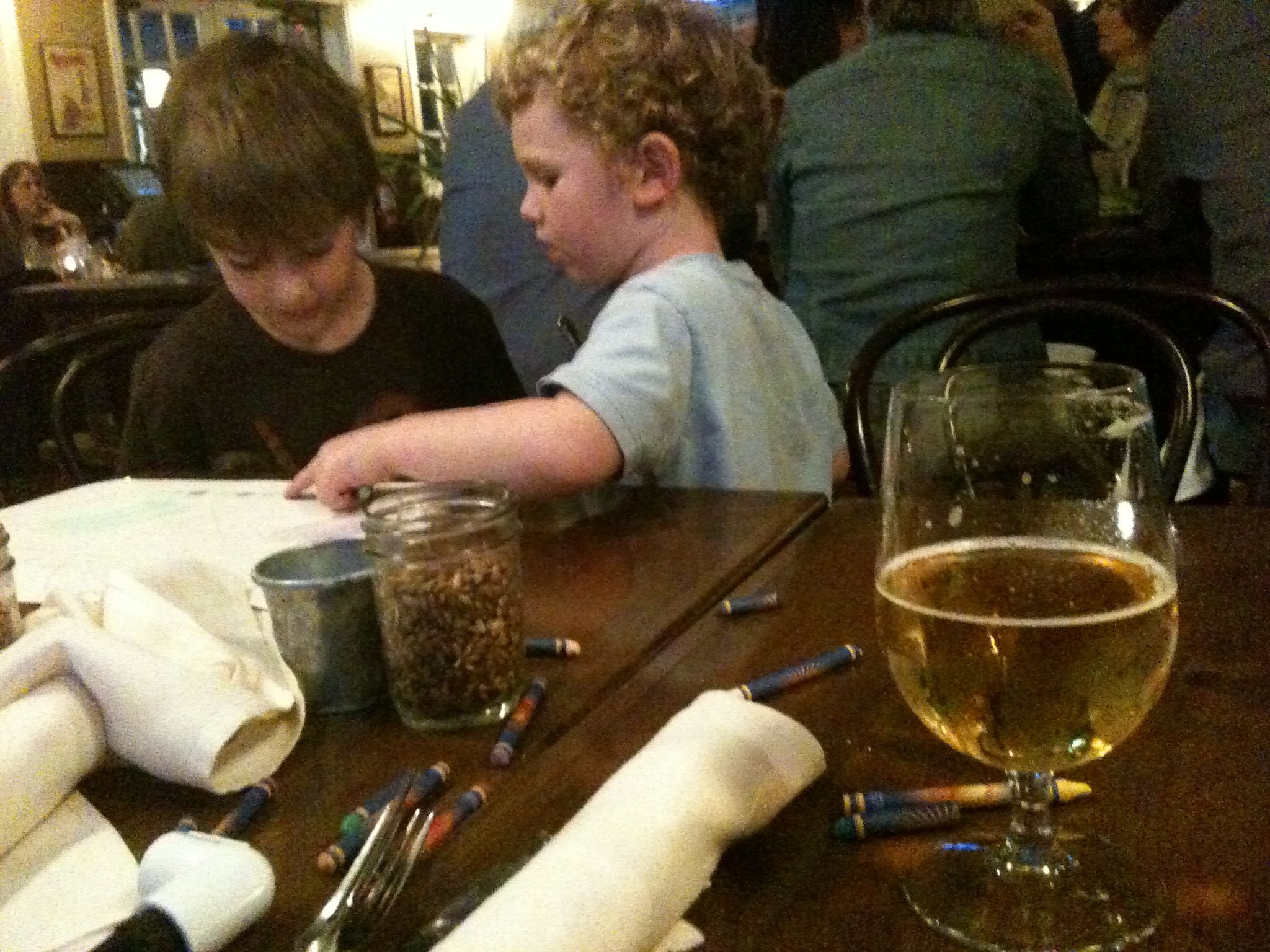 On the way home from our hike, Agoura Hills Dad wanted to grab something at the Do-It Center, but once we got near we realized the time and knew it would be closed. We’ve both been wanting to try Ladyface Ale Companie Alehouse and Brasserie, so I called ahead from the car to make sure they allow children, and we ended up there. The beers made on the premises were a tasty post-hike treat, and the children’s menu is typical but pleasing. Kyle loved the chicken tenders so much that I asked for the recipe, via Twitter, and received! I’ll blog that home cooking adventure in a future post.