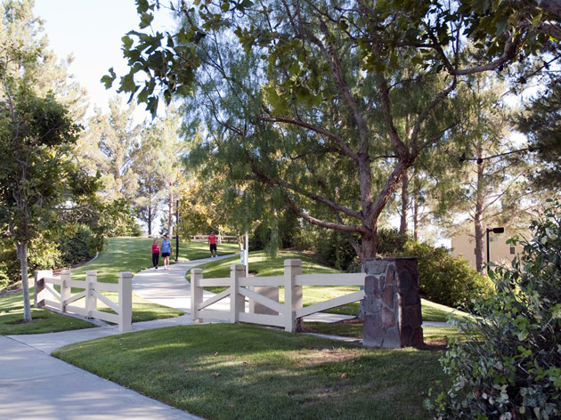 Valencia, otherwise known as “Awesometown,” is north of the San Fernando Valley on the 5 freeway. You might have heard of Magic Mountain? Yeah, it’s up that way. The town prides itself for having the nice neighborhoods, the dubious access to Los Angeles area jobs (you know, despite the traffic) and a growing center of industry right in town, and top-rated public schools. We have family friends who live there. I have seen the beautifully maintained planned walkways and community pools and lovely homes that foster neighborhood activity and outdoor living – if our friends’ kids are any proof, the children in Valencia play a lot of sports. There are more than 30 miles of walkways in Valencia.